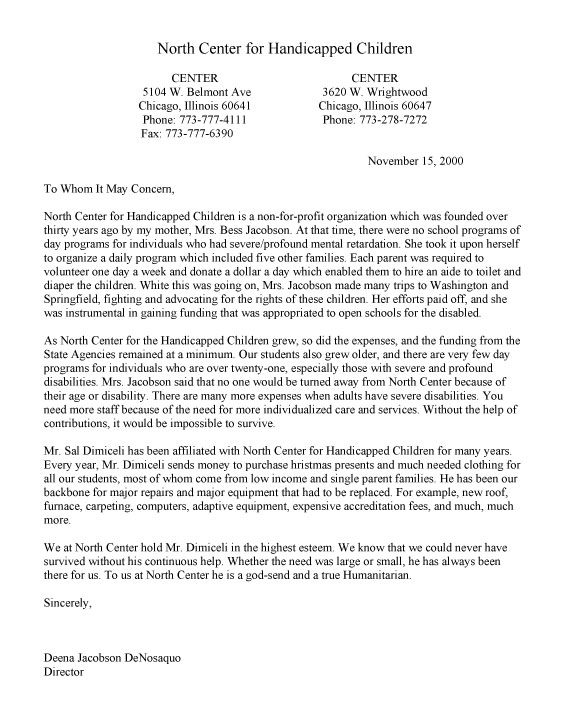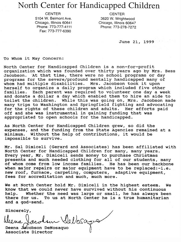 Letter from North Center for Handicapped |