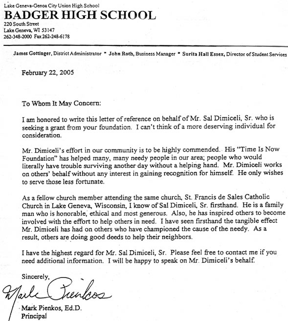 Letter from Badger High School |