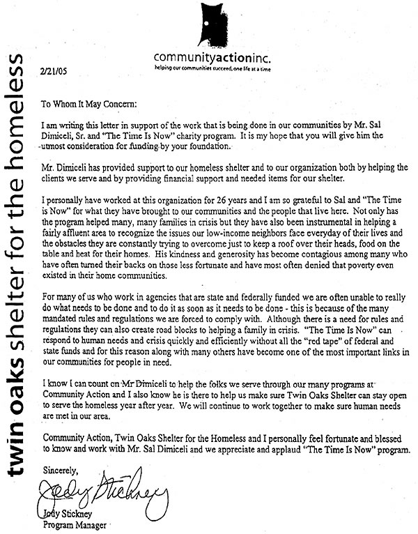 Letter from Community Action Inc. |