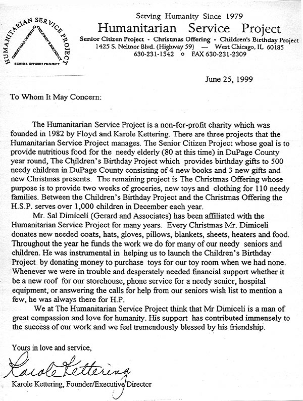 Letter from Humanitarian Service Project |