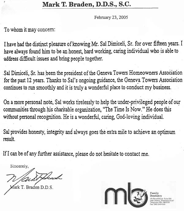 Letter from Mark T. Braden, D.D.S., S.C. |