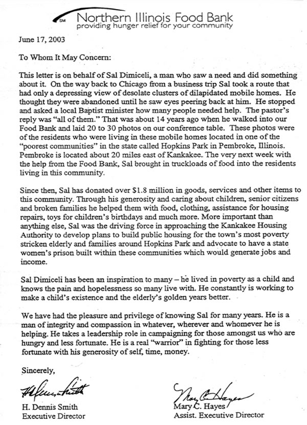 Letter from Northern Illinois Food Bank |