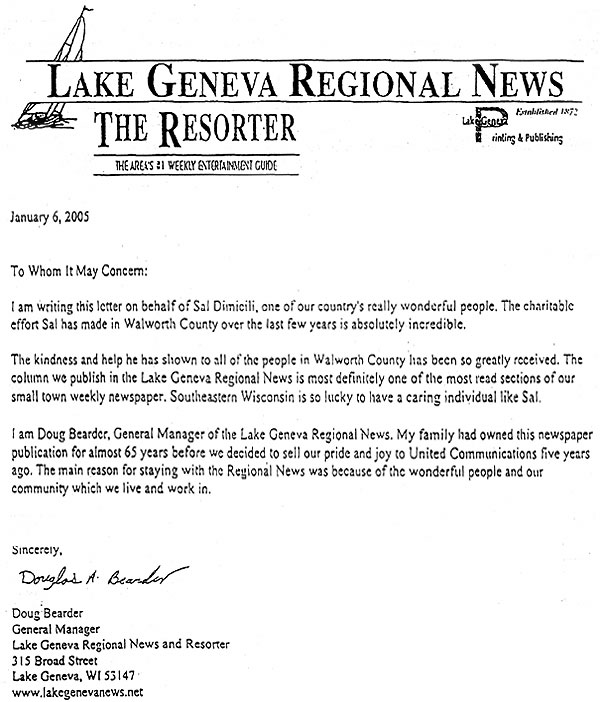 Letter from Lake Geneva Regional News |